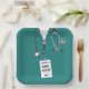 Kreative Teller für den Abschluss von Pflegeschulen mit Klinikscheuchen, Stethoskop und Schweizer Armeemesser. Bearbeiten Sie Text, um den Namen der Krankenschwester hinzuzufügen.