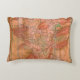 Moderne orangefarbene Blütendrucke auf gestreiftem Zierkissen