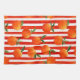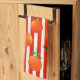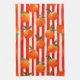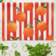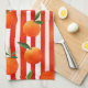 Modernes Küchentuch mit orangefarbenen Früchten auf roten, weißen Streifen.