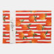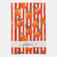 Modernes Küchentuch mit einem orangefarbenen Fruchtmuster auf rot-weißen Streifen und einem femininen, handgeschriebenen Schriftnamen. Personalisieren Sie mit Ihrem Namen.