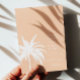 Moderne minimale Palmenbräunen-Dusche Einladung. Trendy pfirsichfarbene Hintergrundfarbe für jedes beliebige Brautparty im Sommer.