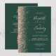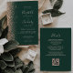 Die links Kulisse dieser modernen Hochzeitseinladung besticht durch ein Glitzer-Design mit Pfirsichfarben. Der anpassbare Text kombiniert blasspfirsichfarbene Handschrift, Copperplate und kursiv Schriftart auf einem smaragdgrünen Hintergrund. Die Rückseite bietet Platz für Hochzeitsdetails auf einem soliden grünen Hintergrund, zusammen mit einem QR-Code können Gäste scannen, um Ihre Website und UAWG zu besuchen, was die Kosten für den Druck und Versand separater RSVP-Karten rette.