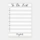 Maßgeschneidertes, personalisiertes, modernes, schicke, stilvolles, trendiges, grau-weiße Streifen Muster, schöne elegante Schrift / Typografie, kleine Quadrate Checkliste / To Do Liste, Zuhause Office business 3M klecky Notes pad. Geben Sie einfach Ihren Namen / Firma / Firmennamen ein, um Ihre persönlichen Wünsche zu erfüllen. Sie können auch den Titel oben von "To Do List" in "Things To Do" oder eine andere Überschrift Ihrer Wahl ändern.
