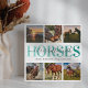 Maßgeschneiderte Pferdebilderplakette mit einem schicken, weißen Hintergrund, der in jede Farbe verändert werden kann, 6 quadratische Bilder Ihrer Haustiere, das Pferdeziffer "Leben ist besser mit Pferden" und ihre Namen.