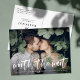 Möchten Sie Ihr Hochzeitstag ändern? Unsere elegante Änderung des Datums der Hochzeitsaufschiebung Postkarten sind perfekt, um Ihnen zu helfen, die Gäste von Ihrem neuen Hochzeitsdatum zu benachrichtigen. Die trendige Änderung der Datums-Postkarte zeigt "worth the wait" in einem weißen, handgeschriebenen Pinsel-Skript-Overlay mit Ihrem horizontalen Verlobung-Foto. Personalisieren Sie die Postkarte, indem Sie Ihre Namen, Rücksendeadresse, Hochzeitsdetails, Hochzeitswebsite, etc. hinzufügen.