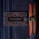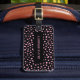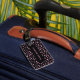 Moderne schwarze Gepäckmarke mit verstreuten Punktmustern und modernem Text. Passen Sie Ihren eigenen Namen und Ihre Kontaktdaten an. Originale Kunst von Künstlern eigene Illustrationen. Bitte nutzen Sie den unten stehenden Button für die Nachricht, um weitere Anpassungen und spezielle Anfragen zu erhalten. © Zoe Chapman Design