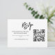 Vereinfachen Sie die Verwaltung Ihrer Gästeliste mit dieser technisch versierten Antwortkarte, die für das effiziente moderne Paar konzipiert ist. Das Layout verfügt über eine fettgedruckte schwarze Pinsel-Schrift-Typografie, die mit einem sauberen, scannbaren Code für nahtlose digitale Antworten kombiniert ist. Einfach anzupassen mit Ihrer spezifischen Website-URL und Fristdetails.