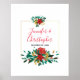 Ein Hochzeitsposter mit hübschem Blumenstrauß in Rot, Gold und Grün. Ein Goldrahmen hinter den Blume. Frohe Weihnachten geschrieben drinnen.