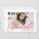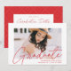 Wir laden Sie ein, den Abschluss mit unserer modernen Foto-Abschlussfeier zu feiern. Die trendy Graduierungsparty lädt das Foto des Absolventen mit "Graduate" in einem roten, modernen Kalligrafiebeschild-Overlay ein. Personalisieren Sie die Front der Einladungen, indem Sie den Namen des Absolventen, die Schule und Abschluss Jahr. Die Einladung kehrt um, um Ihre Graduierungsparty Details und ein trendy rot-weiß gepunktetes geometrisches Muster anzuzeigen.