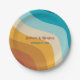 Ein wunderschönes 70er Jahre inspiriertes, farbenfrohes Retro Regenbogen abstrakte Wellen Design. Eine minimalistische Hochzeitsplatte mit groben Mustern und Retro-Farbpalette. Auch die passenden Hochzeitseinladungen und andere Schreibwaren sind verfügbar.