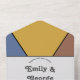 Diese moderne Hochzeitseinladung ist perfekt für das Ehepaar, das will, ein stilvolles Statement abzugeben. Die Einladung zeigt fett-Retro-Kalligraphie auf einem weißen Rechteck mit einem lebendigen, abstrakten geometrischen Hintergrund. Die künstlerische Verbindung von Alt und Neu verleiht jedem Event eine einladende und einzigartige Touch. Egal ob Sie eine Ansammlung planen oder eine große Feier planen, diese Einladung wird Ihren Gästen einen guten Eindruck vermitteln.