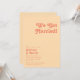 Cette annonce de fuite moderne rétro à la crème orange est parfaite pour votre évasion estivale simple et vintage, colorée et tropicale bohème. Sa police unique de style bohème du milieu du siècle donne à ce design une ambiance hippie groovy minimaliste classique. Si vous cherchez un design qui présente des couleurs vives et audacieuses pour votre mariage créatif des années 70 sur la plage, alors ce produit, et sa collection de mariage coordonnée, sont précisément ce que vous recherchez. N'hésitez pas à changer la couleur et à ajouter vos propres illustrations, graphiques ou photos. Si vous avez des questions sur la conception de ce produit, n'hésitez pas à nous contacter !