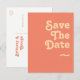 Cette carte postale d'invitation "save the date" rétro moderne corail est parfaite pour votre mariage d'été simple, vintage, coloré, tropical et bohème. Sa police bohème unique du milieu du siècle donne à ce design une ambiance hippie groovy minimaliste classique. Si vous cherchez un design qui présente des couleurs vives et audacieuses pour votre mariage de plage créatif des années 70, alors ce produit, et sa collection de mariage coordonnée, sont exactement ce que vous recherchez. N'hésitez pas à changer la couleur et à ajouter vos propres illustrations, graphiques ou photos. Si vous avez des questions sur la conception de ce produit, n'hésitez pas à nous contacter !