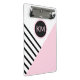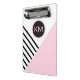 Das moderne geometrische Muster der Pop mit Retro-Ambiente, das mit schwarzen Streifen und rosa Farbblöcken verziert ist, zeichnet sich durch einen gut aufeinander abgestimmten runden Rahmen aus. Personalisieren Sie die Textvorlage mit Ihrem Monogramm. Weitere passende Büroprodukte sind in diesem stilvollen Design erhältlich. Es ist eine wunderbare personalisierte Wahl für Zuhause, Schule oder Unternehmen.