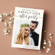 Modernes und schicke helle Creme-Ambiente und kleine Hochzeitsankündigung und Empfang Save the Date mit Ihrem Hochzeitstag Foto "Save the Date für unser glückliches Ever After Party" in einer Mischung aus einfacher Typografie und trendiger Schrift mit Schlagwörtern und Ihren Vornamen und Empfang/Party Datum und Ort. Auf der Rückseite, personalisieren Sie Ihre Hochzeitsankündigung und Empfang-Informationen im Detail.