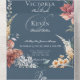 MIT QR CODE ODER MIT ODER OHNE ABENDESCHOICE VERFÜGBAR. Eleganz und Einfachheit, mit einer Touch von Romantik macht diese Hochzeitseinladung einzigartig. Die Bühne wird von einem weichen, dunkelblauen Hintergrund mit einem hübschen Blumenrahmen aus rosa, cremefarbenen, blassgelben und aquamarinen Farben umgeben. Erstellt von der einfachen Farmhouse Press.