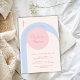 Rustikale moderne, geschlechtsneutrale rosa, blaue, beige Bohroarche mit einfacher Taufeinladung. Um die Farben und Schriftart zu ändern, wählen Sie dieses Design weiter bearbeiten, um zusätzliche Optionen für die Anpassung zu öffnen.