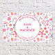 Heller Garten mit modernen pinkfarbenen und orangefarbenen Blume in verstreuten Formen auf weißem Hintergrund. Hübsch und lebendig mit frisch Bohemischem Ambiente. Ein wunderschönes, koordinierendes Hochzeitszeichen, um Ihre Gäste am großen Tag willkommen zu heißen. Originelle Kunst von Nic Squirrell.