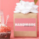 Eine moderne, minimalistische Textpaarung in sich überlappenden Schriftart und trendigem rosa, schwarz-weiß Farbschema, das Handmade Just for You! für den kleinen Zuhause-E-Mail-Unternehmer oder den handgefertigten Kunsthandwerker vorsieht. Die Textfelder sind Vorlagen, damit Sie sie an Ihre Bedürfnisse anpassen können. #Handmade #typografie #minimalismus