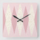Moderne rosa Raute Square Wall Clock Mitte des 20. Quadratische Wanduhr