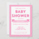 Moderne Babydusche Einladung mit rosa Streifen; ideal für eine Mädchen-Dusche. Personalisieren Sie es mit Ihren Daten, indem Sie den Platzhalter-Text ersetzen. Für weitere Optionen klicken Sie auf die Schaltfläche "Anpassen". *Bitte beachten Sie, dass das Zazzle-Wasserzeichen, das in der Zoomvorschau angezeigt wird, nicht auf dem gedruckten Endprodukt angezeigt wird. © Rosewood and Citrus