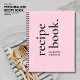 Modernes, rosafarbenes Rezept im Stil der Typografie, fertig, um mit Ihren Lieblingsrezepten der Familie zu füllen. Die Seiten innen sind einfach zu verwenden Rezepte Vorlagen. Einfach mit Ihrem Namen auf der Vorderseite anpassen.