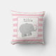 Das Elephant-throw-Kissen ist mit einem hübschen kleinen Elefantenkalb für Neugeborene mit herzförmigen Sprüngen und einem gemusterten Streifen ausgestattet. Modernes helles, rosa, grau und weiß Farbschema - perfekt für ein kleines Mädchen. Personalisieren Sie den grauen Text in Monogramm mit dem Namen Ihres Kindes.
