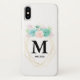 Ein monogramm Telefongehäuse mit einem Aquarelltuch. Diese köstlichen Blume, Blätter und Krawatten sind in sanften Pastellrosa und minzgrün gehalten. Ein trendiger geometrischer Rahmen mit einem Imitat mit goldenen Rahmen umschließt Ihren Text.