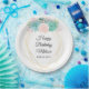 Geburtstagspapier-Teller mit einem Aquarelltuch-Bouquet. Diese köstlichen Blume, Blätter und Krawatten sind in sanften Pastellrosa und minzgrün gehalten. Ein trendiger geometrischer Rahmen mit einem Imitat mit goldenen Rahmen umschließt Ihren Text.