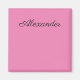 Rosa, solide gefärbte Hintergrundfarbe. VORLAGE für einen Namen in schwarzem Skript. Moderner Küchenmagnet mit leicht zu personalisierender Vorlage für die perfekte Küche.