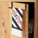 Ein schönes und farbenfroh modernes Küchentuch, das in schwarz und mit rosa Rosen Streifen geschmückt ist