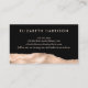 Eine schicke und moderne berufliche Visitenkarte mit goldenen Streifen in glänzender Rose, die in Rose goldfarbenen Imitaten Glitzer vor einem schwarzen Hintergrund. Ihr Name und Ihre Details sind in einfacher und eleganter Rose goldene Typografie.