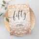 Elegante Glam Rose Gold Glitzer Lights 50. Geburtstag Script Einladung Vorlage mit funkelnden Lichtern und modernen Typografie-Skript.