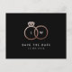 Ein modernes Monogramm bekommt Glam mit verflochtenen Imitaten Rose goldene Hochzeitsringe und personalisierten Text, was diese Save the Date Postkarte zu einem neuen Klassiker macht, mit gestrafftem Text in sanfter staubiger Rose auf klassischem Schwarz. Personalisieren Sie den gesamten Text dieses minimalen Save the Date und fügen Sie ein Verlobung-Foto für einen gepflegten und einfachen Blick, während Sie Ihre Gäste zu Save the Date für Ihren großen Tag.