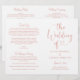 Moderne Hochzeitszettel-Programme mit stilvollem Goldtypografie-Design aus der Rose mit schicker Kalligraphie-Schrift und Herzakzent. Der einfache und elegante benutzerdefinierte Text, der für Ihr Brautparty personalisiert werden kann, Zeremonie Informationen, und danke Ihnen Nachricht. Hinweis: Diese Textgewichtspapierprogramme kommen flach an und müssen zum Zusammenbauen zusammengelegt werden.