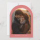 Moderne Rose Rosa Arch Foto Hochzeitseinladung. Genießen Sie die Romantik dieser eleganten, archförmigen Einladungen, die in einer sanften Rose in Rosa gehalten sind. Diese Einladungen strahlen einen romantischen und modernen Charme aus. Mit einem anmutigen Bogendesign präsentieren sie eine minimalistische Ästhetik mit klaren Linien. Die Vorderseite ist mit gewölbten Texten für eine Touch der Raffinesse ausgestattet, während die Rückseite ein gewölbtes Foto des Ehepaares und ihrer Namen in eleganter, mutiger Typografie zeigt. Diese Einladungen sind perfekt für Paare, die einen raffinierten und zeitlosen Look für ihre Hochzeit suchen.