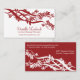 Eine stilvolle Visitenkarte mit roten Zen-Zweigen und Blätter auf weißem Hintergrund auf der Vorderseite und weißen Zen-Zweigen und roten Blätter auf der Kartenrückseite. Ein elegantes Design, das sich perfekt für Visitenkarten, Massagetherapeuten, Nageltechniken und vieles mehr eignet.