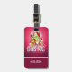 Personalisierter Gepäckanhänger mit einem hellen und festlichen Weihnachtsgrafik. Der Text sagt frohe Weihnachten und Glück im neuen Jahr. Entworfen mit einem baumförmigen Hügel mit festlichen Schneeflocken, Sternen, Weihnachtsbaumbläsern und glänzend aussehenden Glitzern. Auch die Kiefernnadeln und die baumförmige Abbildung sind in diesem Urlaubsbild enthalten. Der Hintergrund ist eine lebendige rötlich-rosa Farbe.
