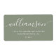 Dieses elegante und zeitlose, moderne weise grüne Rücksendelabel zeichnet sich durch einen stilvollen Skriptfamilie-Namen aus, der mit klassischem Serif-Adresstext gepaart ist. Ideal für Hochzeiten, Ferien-Mailings, den täglichen Briefverkehr oder das Hinzufügen einer schicken personalisierten Touch zu Geschenken und Briefumschlägen. Ein vielseitiges Design in einem trendigen Salbei-Grün-Schatten, der das ganze Jahr über schön wirkt.