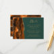 Der links Rand dieser eleganten, modernen Kapseleinhänge-Kapselkarte mit seinen zarten Rost- und Orangetönen, die mit dem vergoldeten Glitzer der Imitate bestickt sind, ist mit einem Aquarellrahmen versehen. Der Text ist in goldfarbenem Schriftzeichen und Copperplate-Schriftart auf einem Jäger-grünen Hintergrund. Die Rückseite ist mit Rost- und Goldagatdesign ausgestattet.