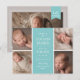Moderne Geburtsankündigung mit 4 Fotos auf der Vorderseite und einem auf der Rückseite. Alle Farben können individuell angepasst werden. Es kann mit Ihrer eigenen Nachricht und Babystatistiken personalisiert werden.
