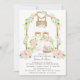 Moderne rustikale Outdoor Watercolor Floral Wedding Einladungen mit einem stilvollen Aquarellbogen mit Herz und einem Tisch mit Stühlen mit rosa, weiß und grün Blume auf weißem Hintergrund. Fügen Sie Ihren individuellen QR-Code auf der Rückseite für Ihre Hochzeitswebsite hinzu. Personalisiert, indem Sie den Text in den dafür vorgesehenen Textfeldern bearbeiten. Entworfen von ©Evco Studio www.zazzle.com/store/evcostudio