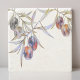 Ein wunderschöner, moderner Untersetzer aus rustikalem Stein mit handbemalten Olivenbäumen mit antiken Goldakzenten