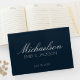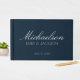 Moderne schicke Navy Blue White Script Hochzeit Gästebuch
