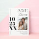 Diese moderne Save the Date-Karte zeichnet sich durch ein elegantes und minimalistisches Design aus, das sich ideal für Paare eignet, die eine gepflegte und raffinierte Ästhetik Liebe. Auf der Karte wird das Hochzeitstag in fett gedruckter, großer Typografie auf der links Seite sichtbar, sodass das Datum gut erkennbar ist. Auf der rechten Seite gibt es einen speziellen Platz für ein Foto des Ehepaares, der der Ankündigung eine persönliche Touch verleiht. Der Text ist elegant in einem zeitgenössischen Schriftart gestaltet und behalte den Fokus auf die wesentlichen Details wie die Namen der Paare, das Hochzeitstag und die Lage. Die Verwendung von Schwarz und Weiß schafft ein zeitloses Aussehen und macht diese Karte zu einer stilvollen Wahl für jede moderne Hochzeit.
