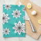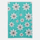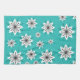 Feiern Sie Weihnachten in diesem Jahr mit einer Geschenkidee im Retro-Stil der 50er Jahre mit Schneeflocken und atomaren Sternexplosionen mit türkisblauem Hintergrund.