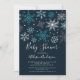 Moderne Winterschneeflocken mit Babydusche auf dunkelblauem Hintergrund für eine Mädels, Jungen oder eine Babydusche. Dreh unsere einmalige Einladung vorbei, um einen passenden Rücken für eine besondere Touch zu sehen.