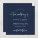 Diese minimalistische, dunkelmarineblau-blaue und weiße Hochzeitseinladung besticht durch moderne handgeschriebene Schrift-Typografie und ein einfaches und stilvolles Layout.