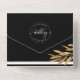 Elegante, moderne All-in-One-Hochzeit-Einladung mit perforiertem UAWG mit einem auffallenden, stylischen Design mit oberem und mittlerem, schwarzem Hintergrund mit weißer Typografie, UAWG postcard-Unterteil mit schwarzem Hintergrund und weißem, langgestrecktem Streifen und Typografie in Schwarz, damit die Gäste ihre Antwort auf einfache Weise ausfüllen können. Delikate Imitate Goldfolie-Blätter zeigen Ihre Details. Umweltfreundliche Einladung, da keine zusätzlichen Beilagen, RSVP-Karten oder sogar Umschläge nötig sind, diese Einladung hat alles! Die Möglichkeit, sowohl Hochzeitsfeier und Empfang Details hinzuzufügen, als auch UAWG postcard bereit für die Gäste zu füllen und zu schicken! Elegantes minimalistisches Design in Schwarz/Weiß mit modernen handgeschriebenen Kalligrafiedetails. Die Option, Einladungen mit gedrucktem (oder später per Hand geschriebenem) Gastnamen auf der Rückseite zu bestellen, damit Sie ihn ohne Umschläge verschicken können. Wenn Sie Umschläge bevorzugen, löschen Sie einfach den Namen und die Adresse der Gäste aus den Textfeldern, um sie zu entfernen. Ein attraktives modernes Design, ideal für das elegante, aber dennoch praktische und Öko-freundliche Ehepaar!