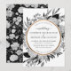 Schwarz-Weiß-Aquarellblumen aus Hydrangeas, Eukalyptus und Torfbäumen mit goldgelben, kreisförmigen Imitaten (optional). Der gesamte Text ist anpassbar, ebenso das Backer-Muster.